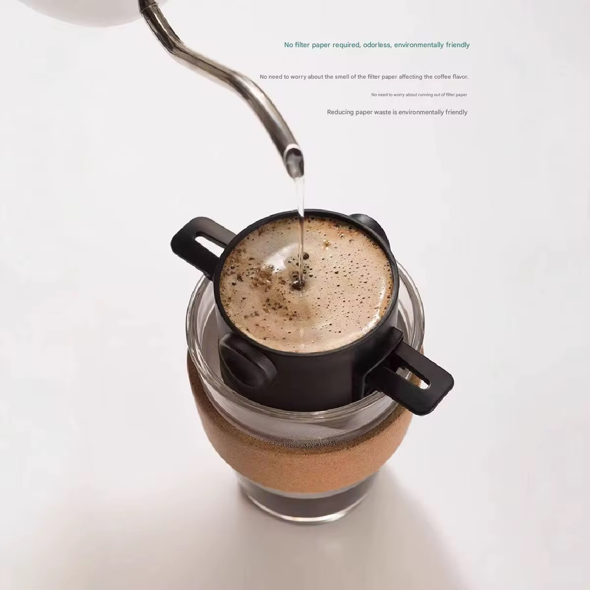 فقط کافیست قهوه آسیابشده را داخل مخزن بریزید، آب جوش اضافه کنید و اجازه دهید عصارهگیری از فیلتر استیل انجام شود… چند لحظه بعد، قهوهای شفاف، خوشعطر و حرفهای داخل لیوان شماست. بدون برق، بدون باتری، بدون دردسر